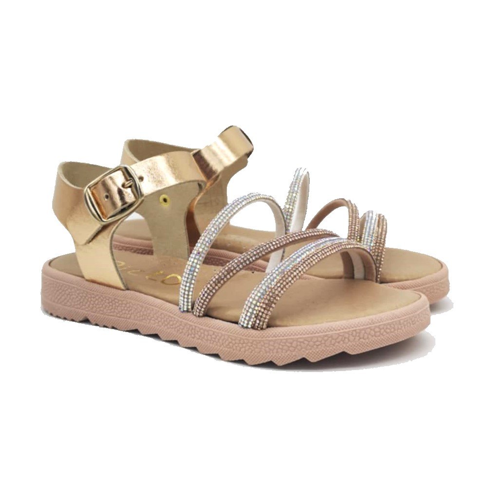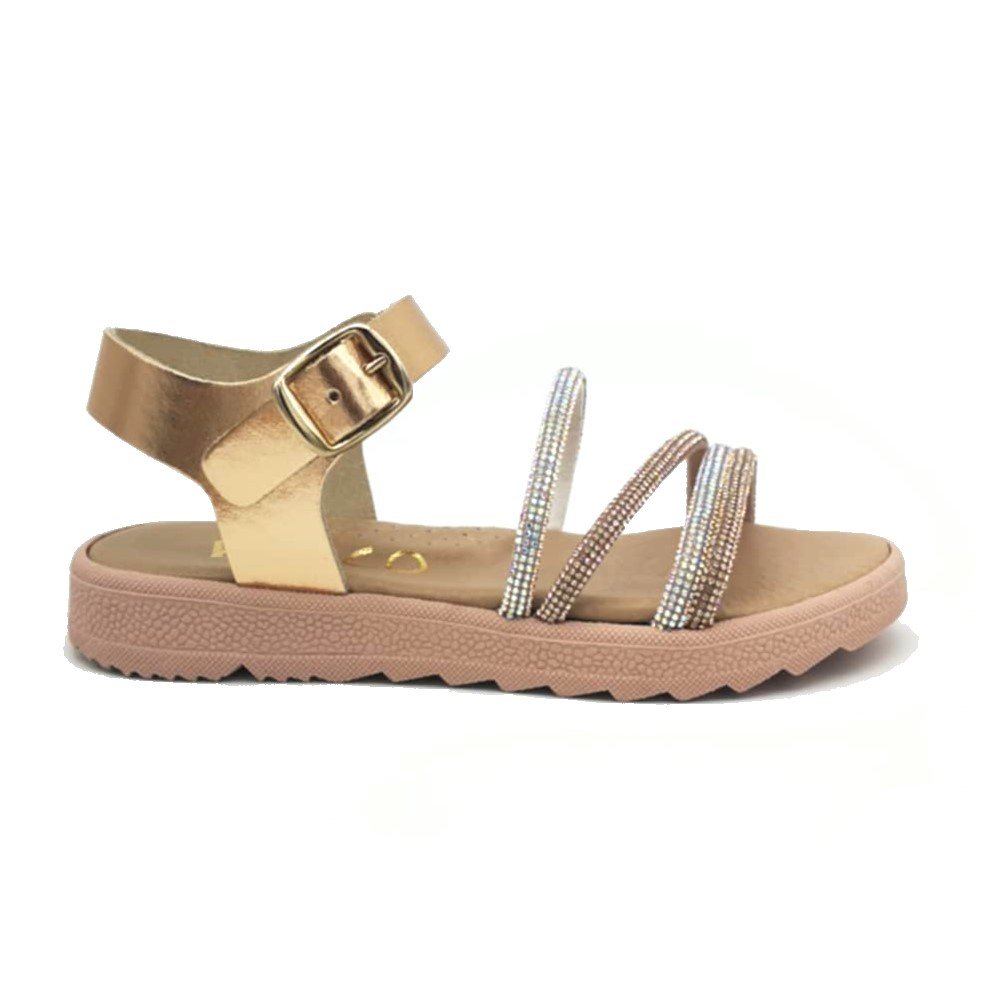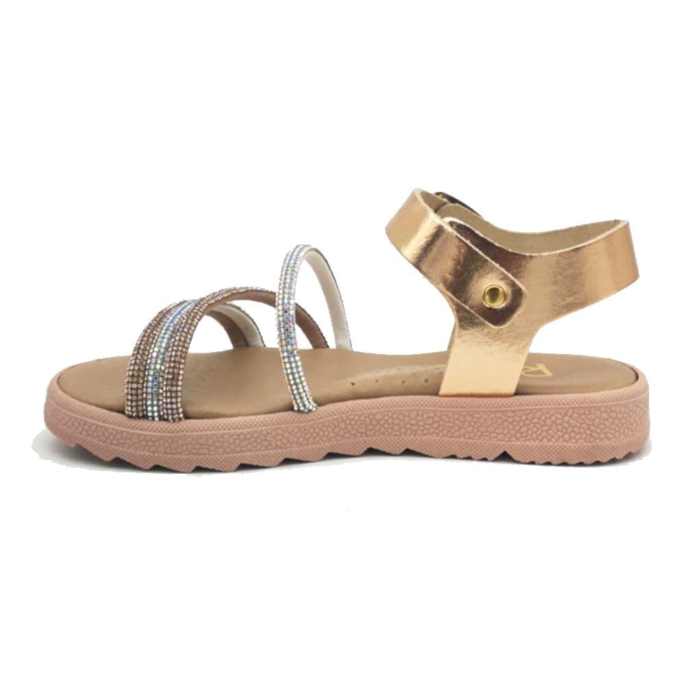 Παιδικά δερμάτινα πέδιλα, σε χρώμα μπρονζέ-χάλκινο, με glitter λουράκια.