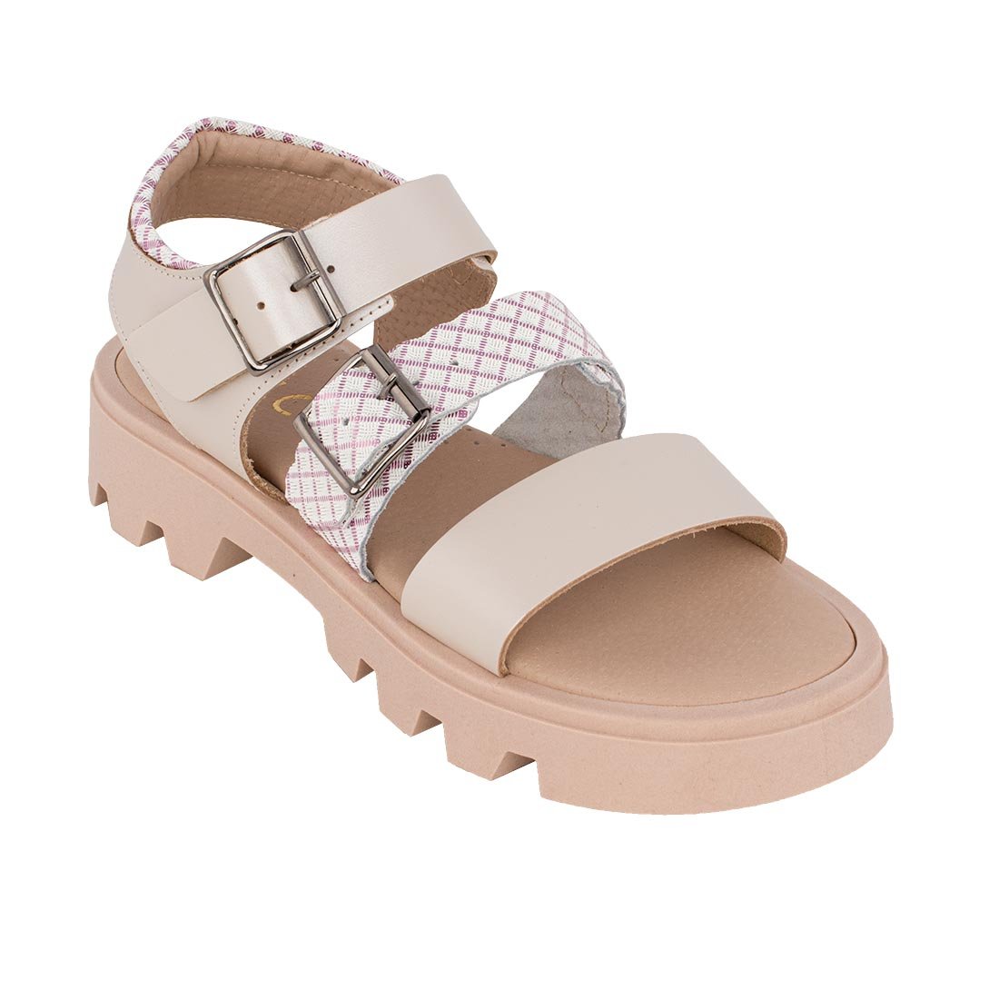 Παιδικά δερμάτινα πέδιλα, σε ροζ/nude χρώμα.